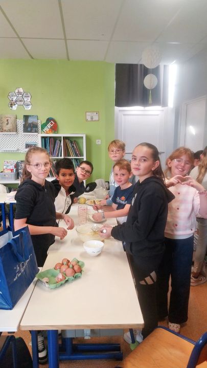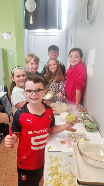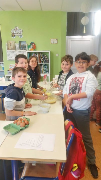 Nous avons repris la réalisation des gâteaux d'anniversaires. Ce mois-ci, c'était le tour de notre classe. Nous avons fait des gâteaux aux pommes. Aux dires des autres élèves, ils étaient très bons !!