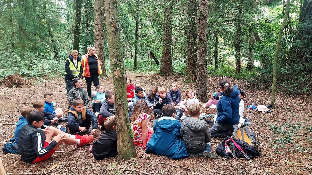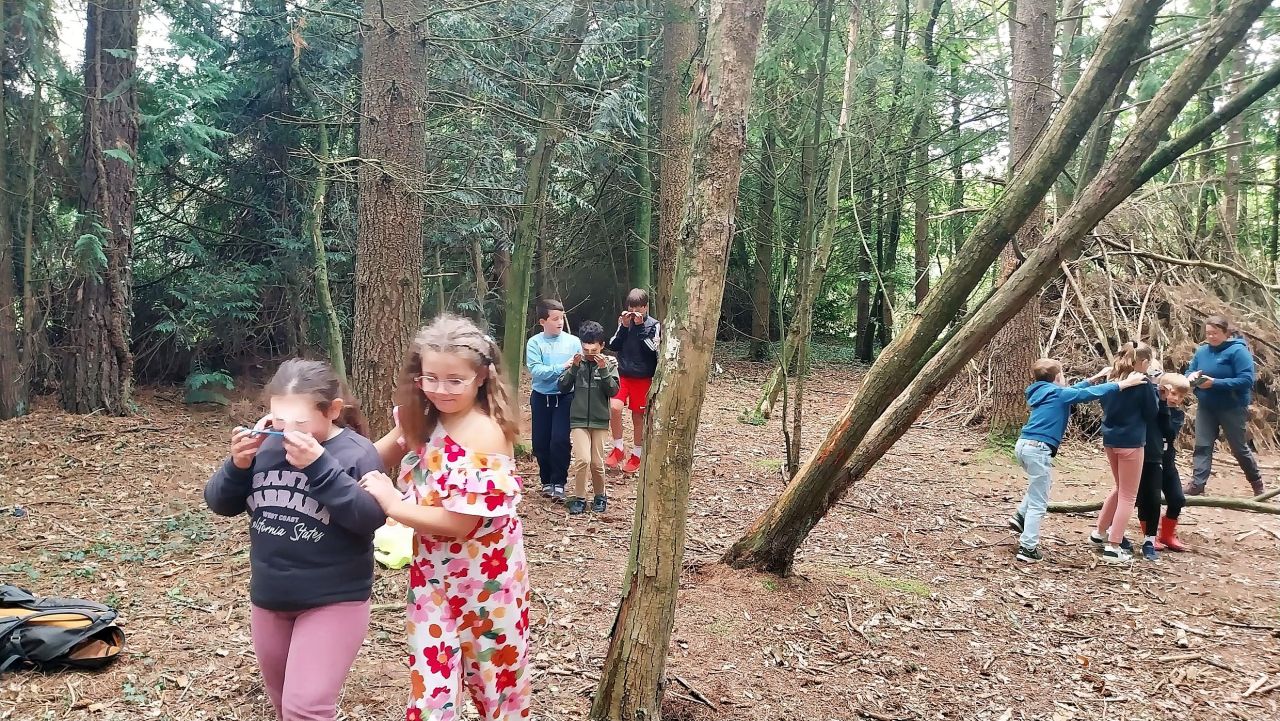 Pour la première séance du 1er PEL, nous avons choisi comme thème l'Approche sensible de la nature en lien avec les contes. Pour la première séance, nous sommes allés dans le bois des Rochers Gaveaux où Gwennan, l'intervenante du CPIE, nous a raconté une histoire de Korrigans. Puis nous avons tenté de faire un squelette de poisson à partir d'une feuille. Enfin, pour développer notre imaginaire, nous avons déambulé avec un miroir sous le nez et avons cherché dans la nature des formes qui nous évoquaient des choses réelles (nous avons appris un mot savant, cela s'appelle la paréidolie.)