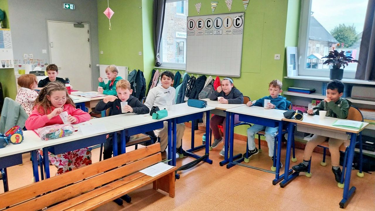 Depuis la rentrée, tous les élèves de l'école ont la chance de bénéficier de cours d'anglais proposés par l'association Fizz avec Michelle. Dans notre classe, nous avons commencé à travailler autour du conte "Goldilocks and the Three Bears" en lien avec notre thème d'année. Dans ce conte en anglais, Boucle d'or mange le pudding des ours. Avec les élèves, Michelle a préparé un pudding pour toute la classe. Certains ont trouvé cela délicieux , d'autres un peu moins !